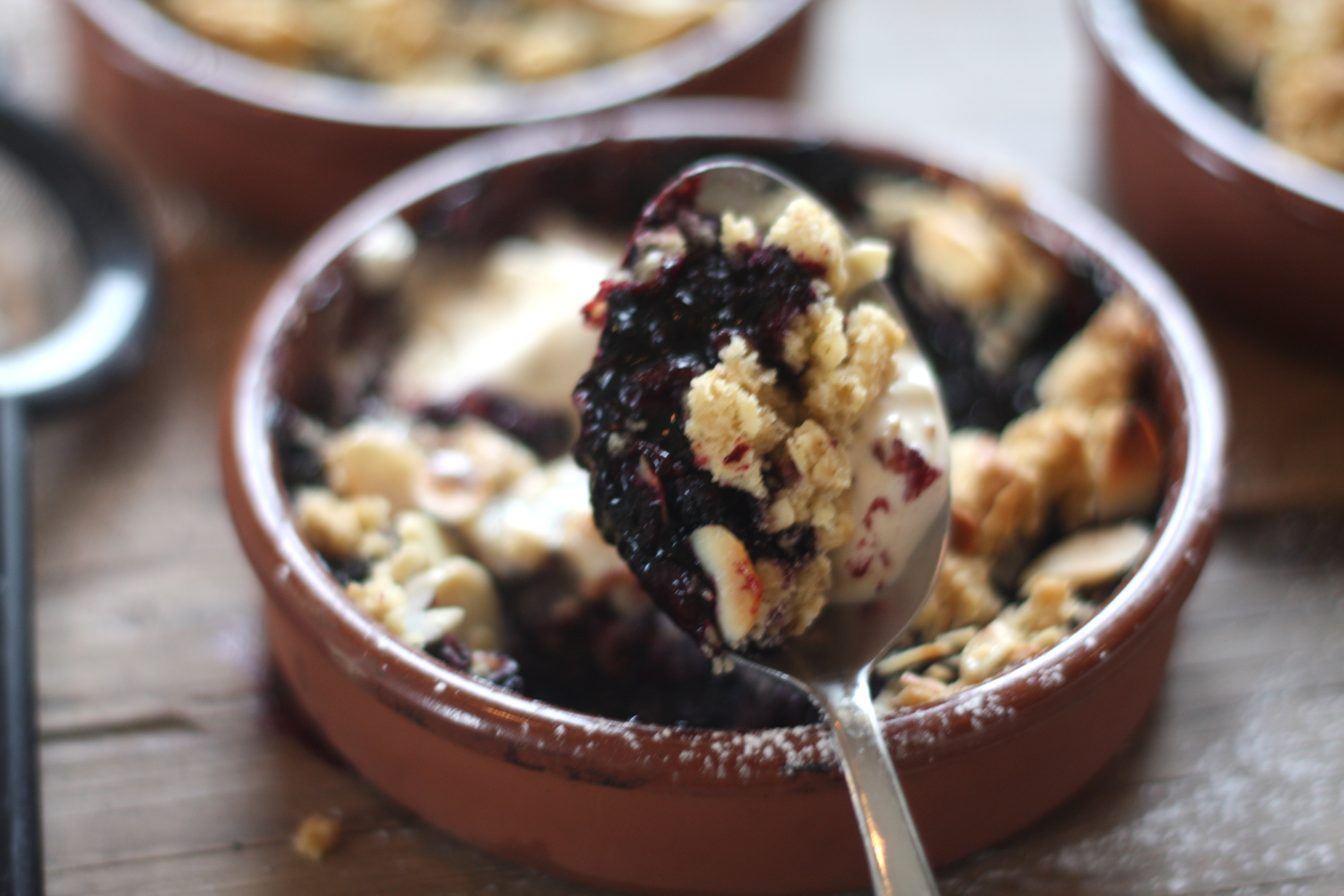 Smuldrepai er så utrolig godt og en meget enkel dessert å lage. Da jeg var lite pleide søstrene mine og de andre jentene i gaten vår, å plukke blåbær i skogen på sommerkveldene. Etterpå spleiset vi på en boks med vaniljeiskem, og laget smuldredeig fra mammas brune kokebok.Fine sommerminner.