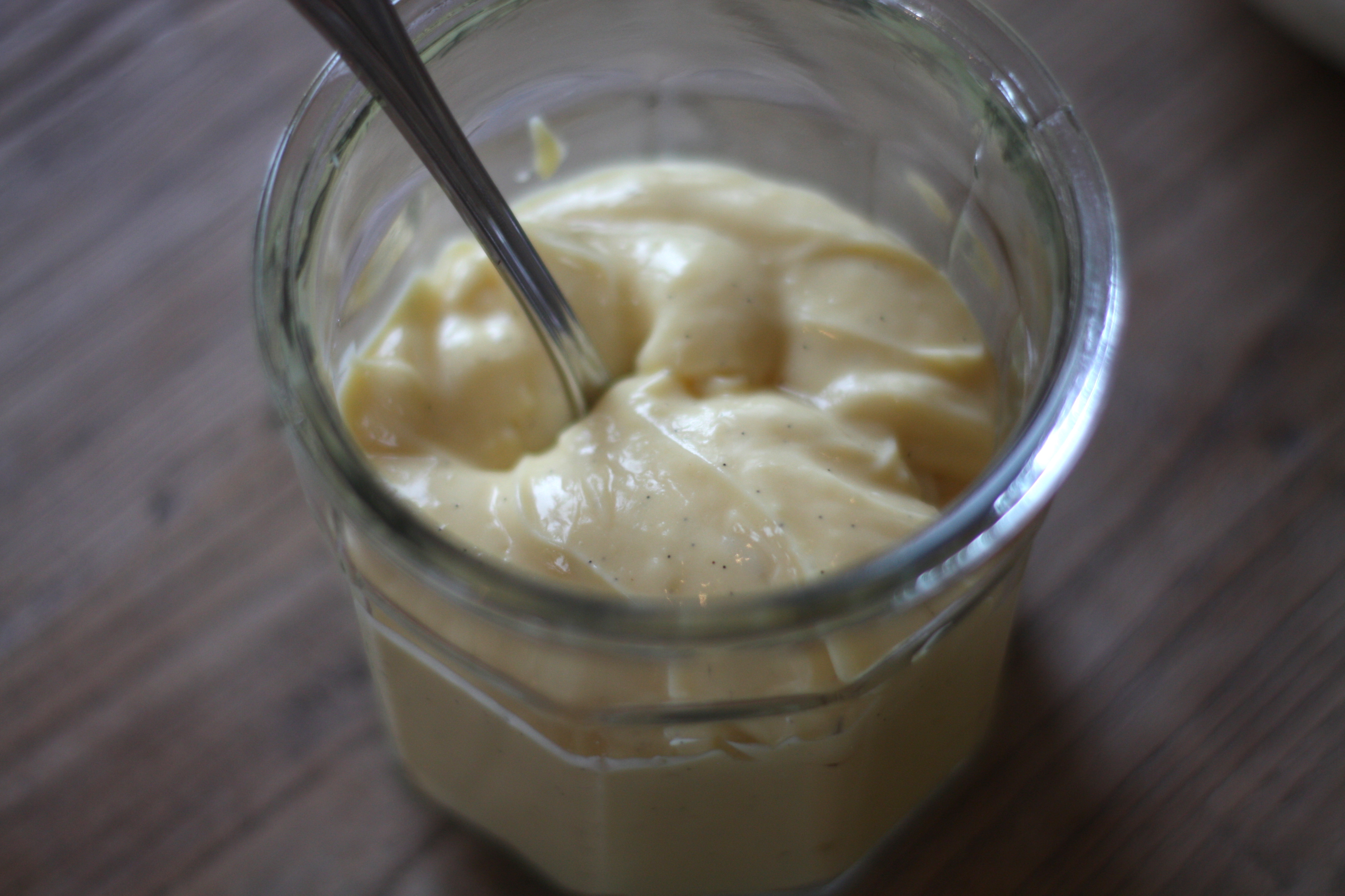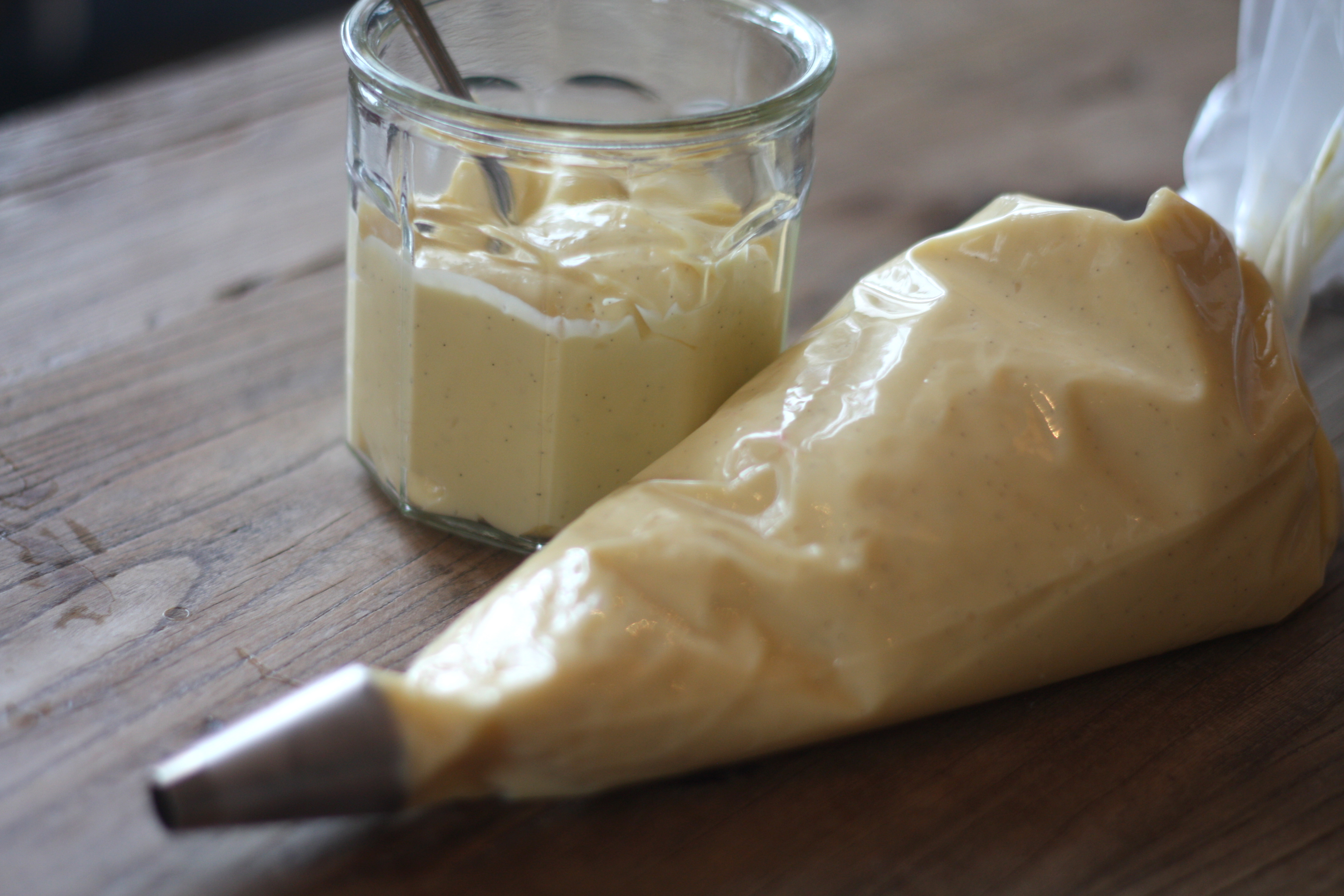 Denne oppskriften gir en stor sprøytepose + en glass. Greit å ha klart om du skal lage skoleboller, linser eller ha i bløtekake. Oppskrift på brioche med vaniljekrem og bær kommer imorgen 🙂