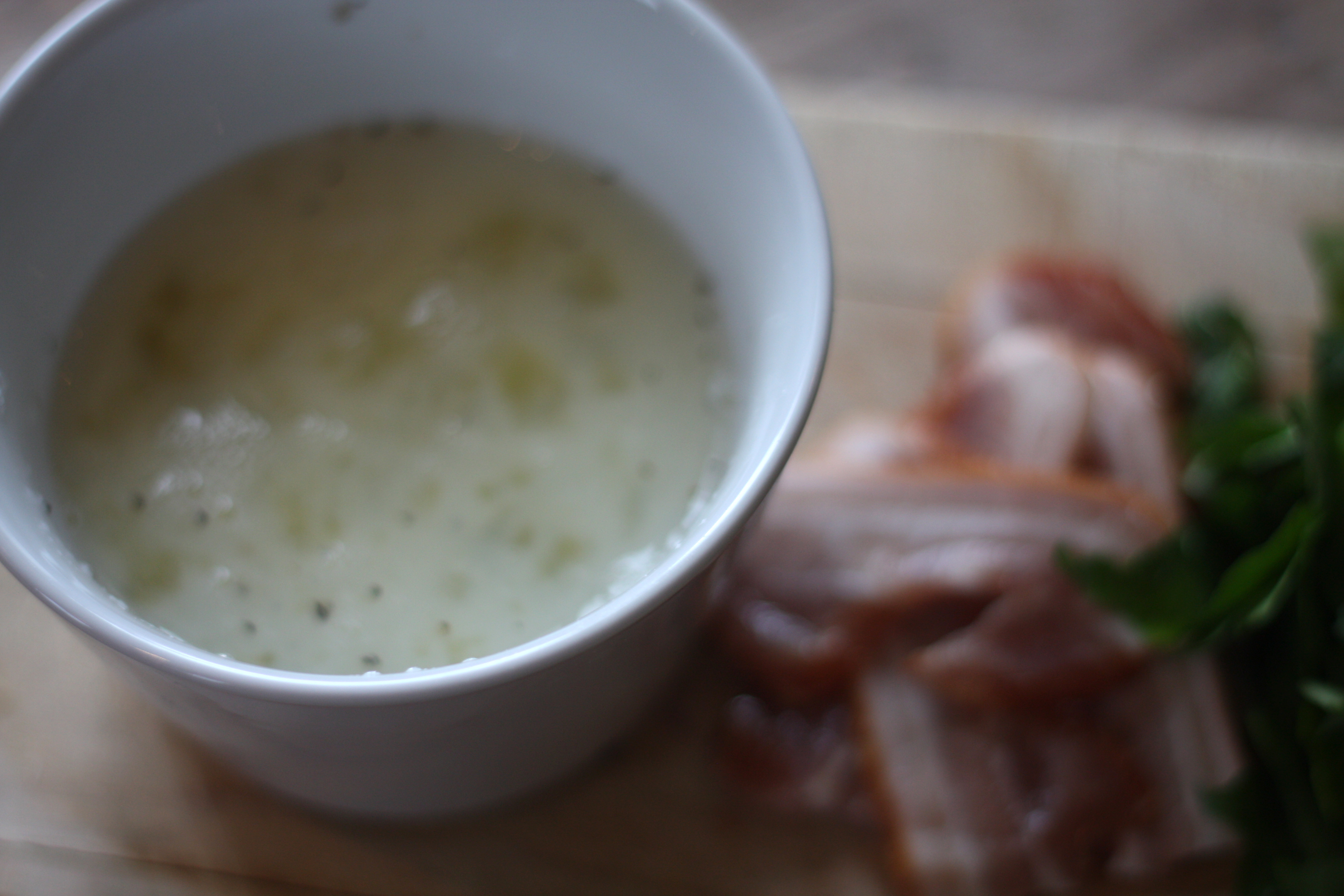 2. Bland eggehvitene med en skvett melk. Bland inn salt og pepper.