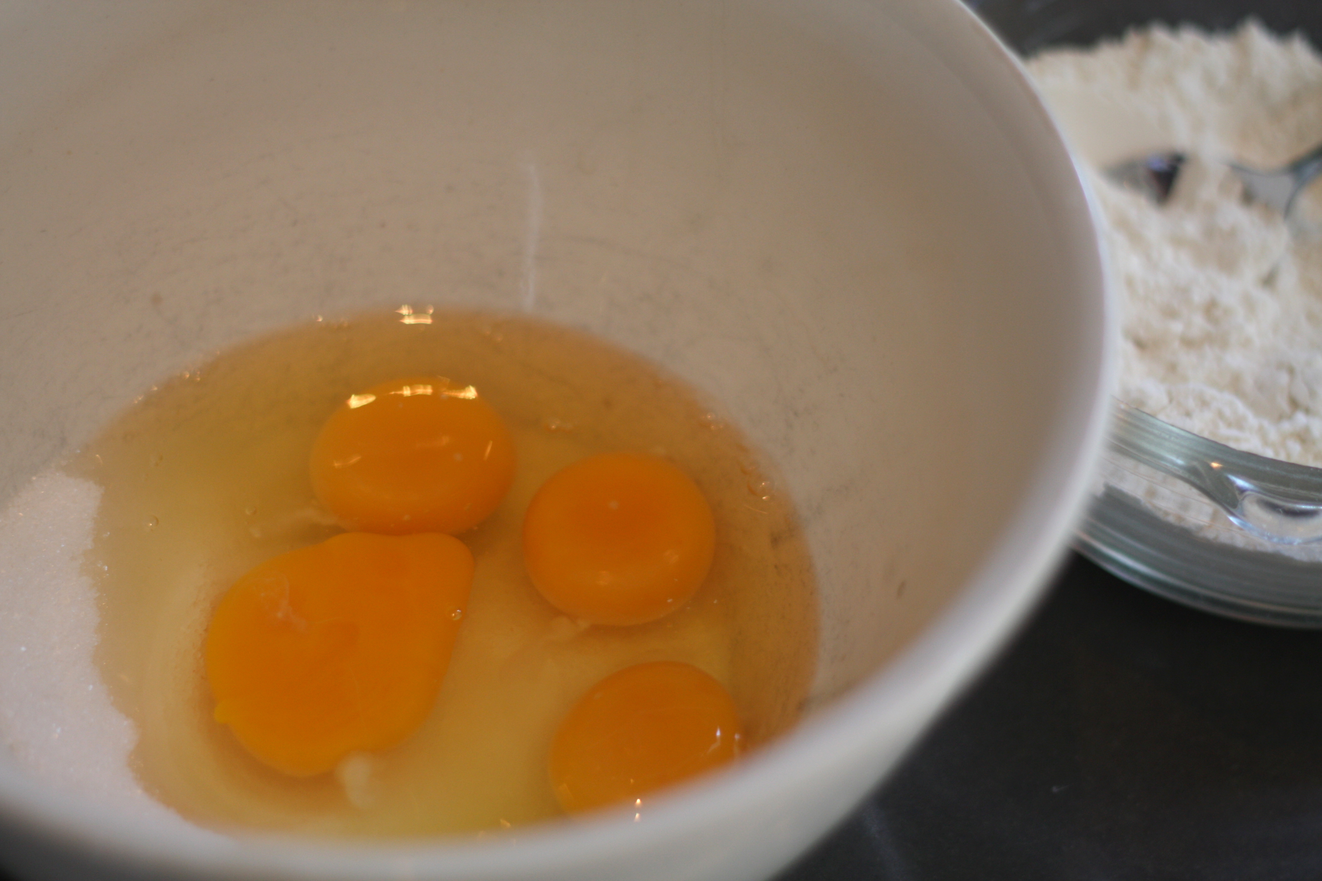 1. Pisk egg og sukker til luftig eggedosis, ca. 15 minutter.