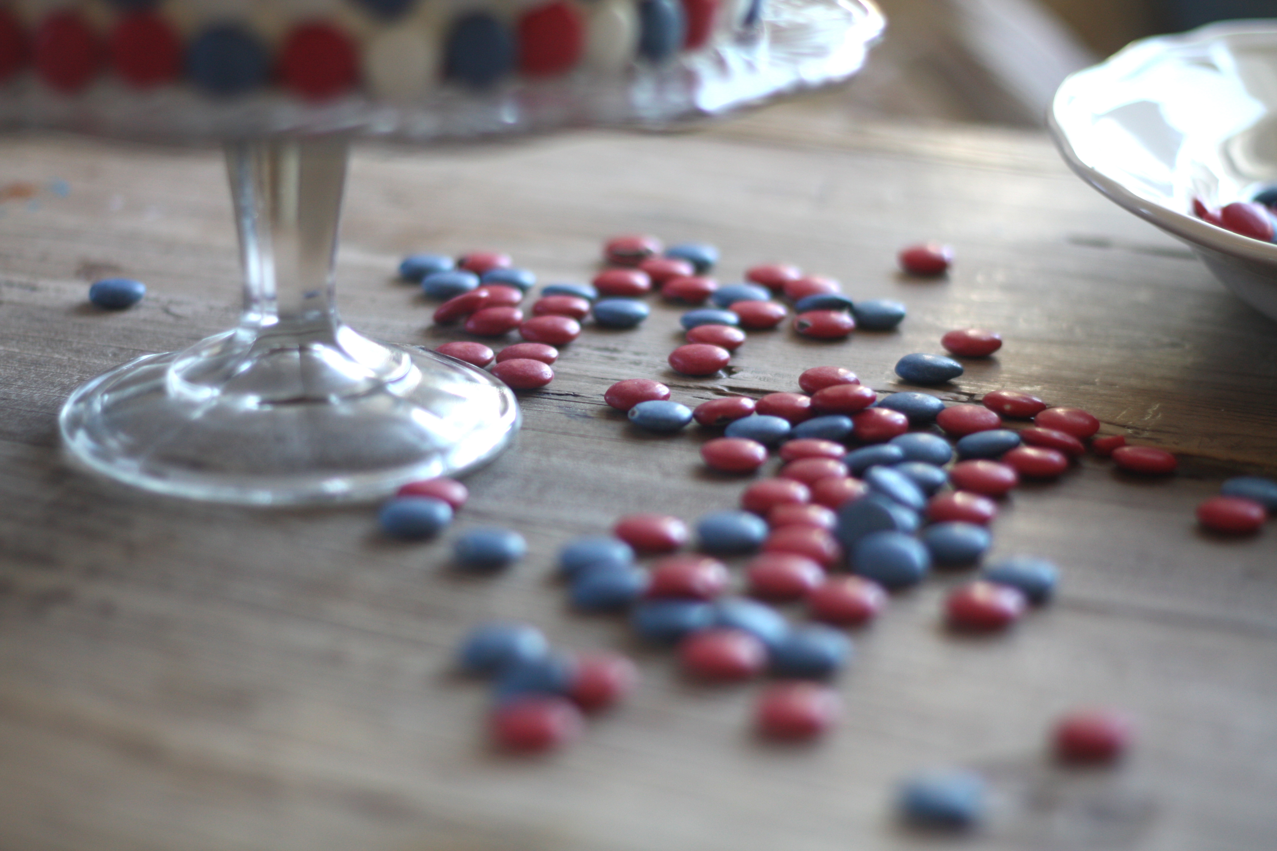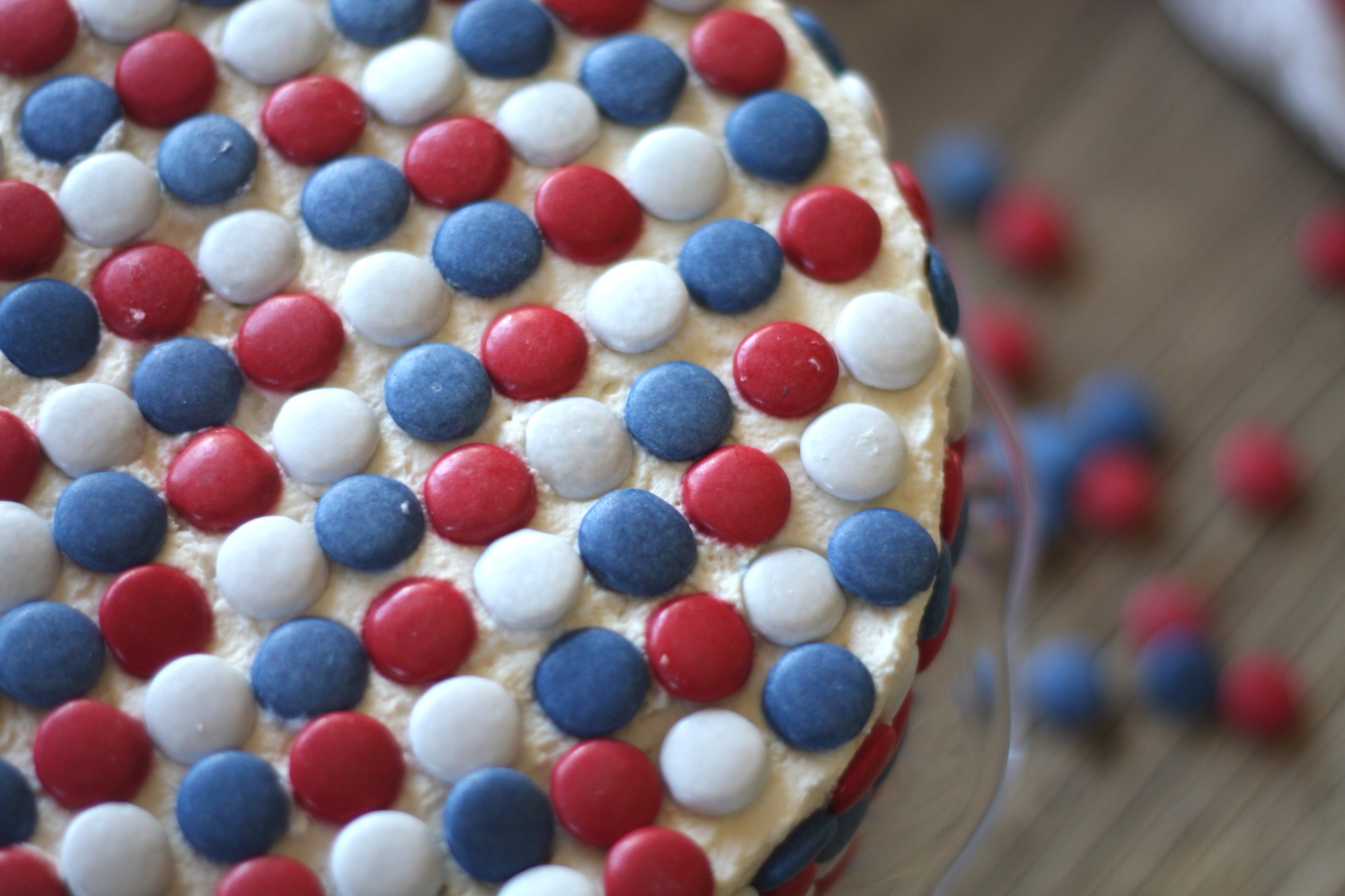 Pynt med non stop over hele kaken. Jeg la rødt, hvitt og blått etter hverandre.