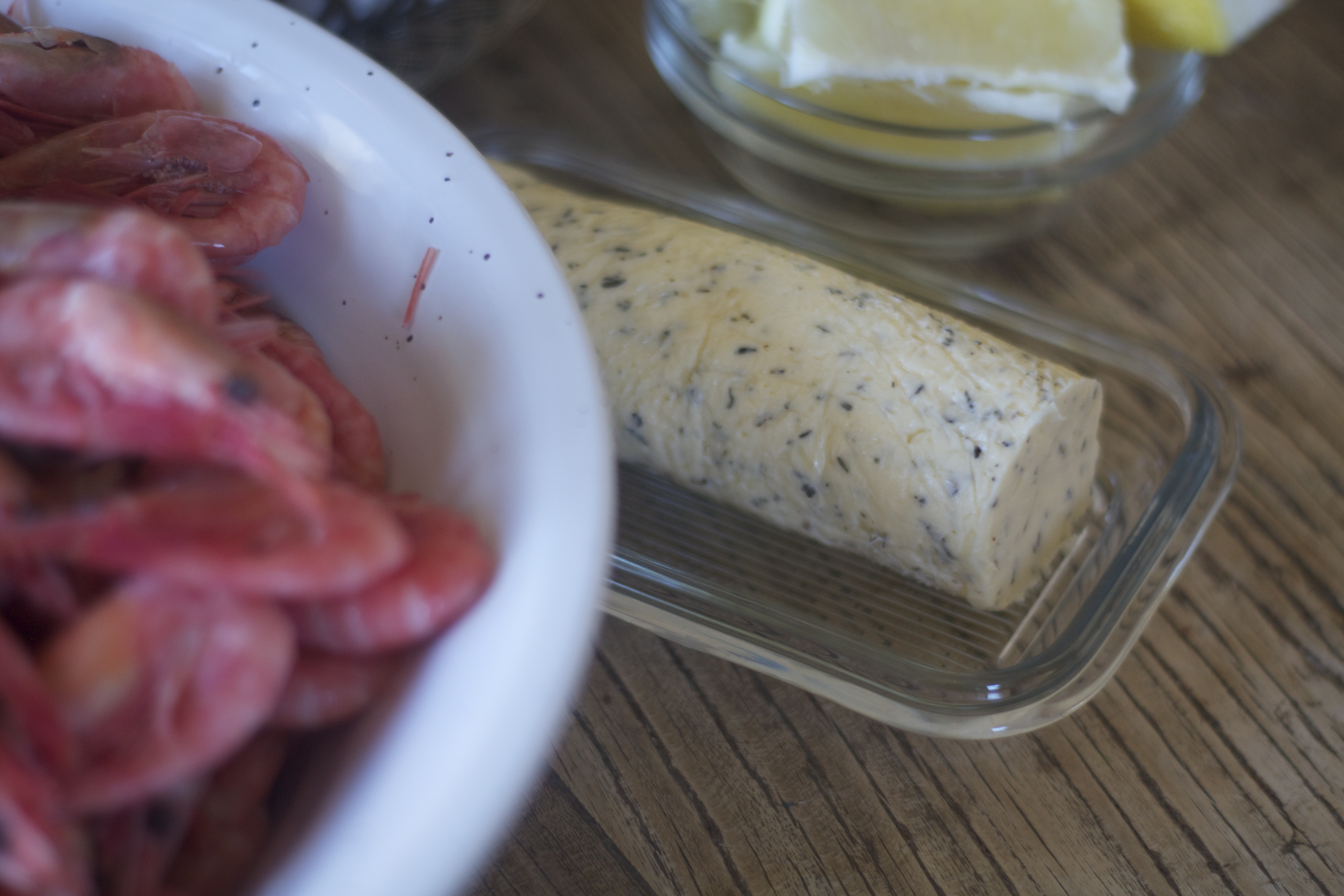 Sommern er høysesong for reker, imponer gjestene med eget smør. Tenkte også å gi et lite reke tips. Jeg bruker å kjøpe frossene reker. Ha dem i kjele med iskaldt vann, litt salt og sukker. Etter 45 min er de nesten tint. Hell av vannet og la rekene renne av på avispapir. Smaker som ferske, om ikke bedre 🙂