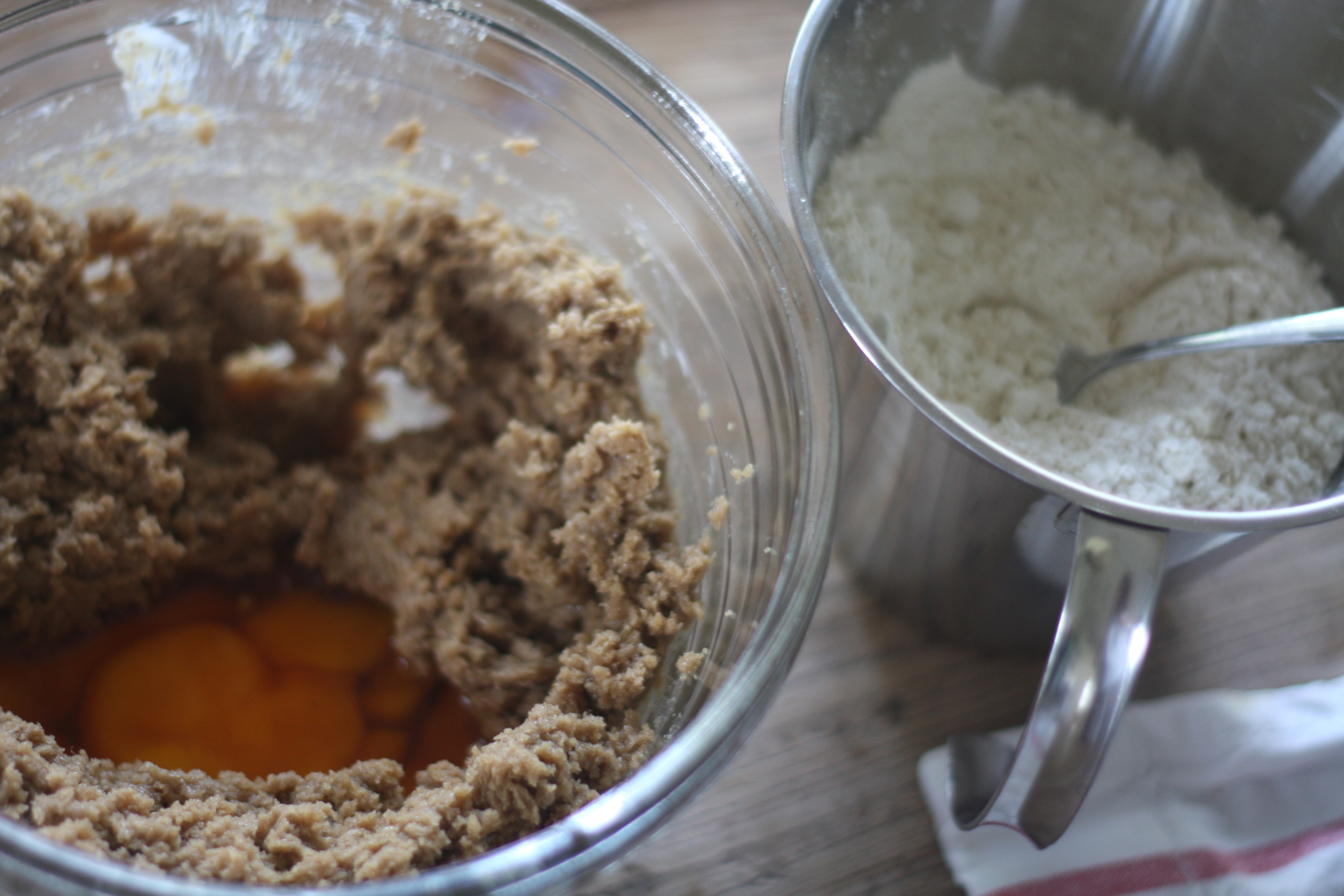 2. Tilsett egg vaniljestrakt. Når alt er godt blandet, vend inn mel og natron.