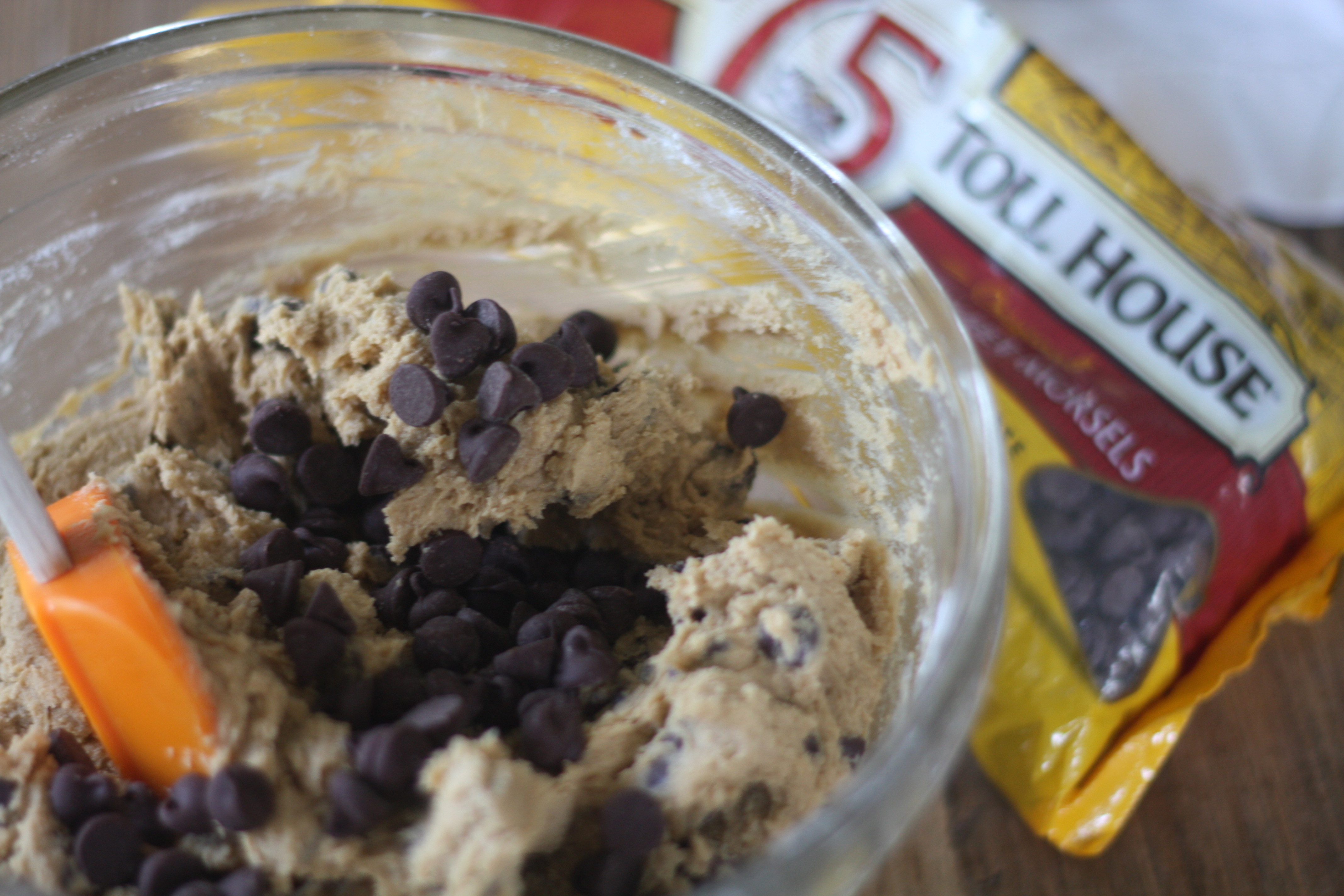3. Ha i chocolate chips tilslutt. Kjøpte mine av merke nestel i USA. Lurt å handle meg seg et par poser i utlandet. Mye billigere enn i Norge.