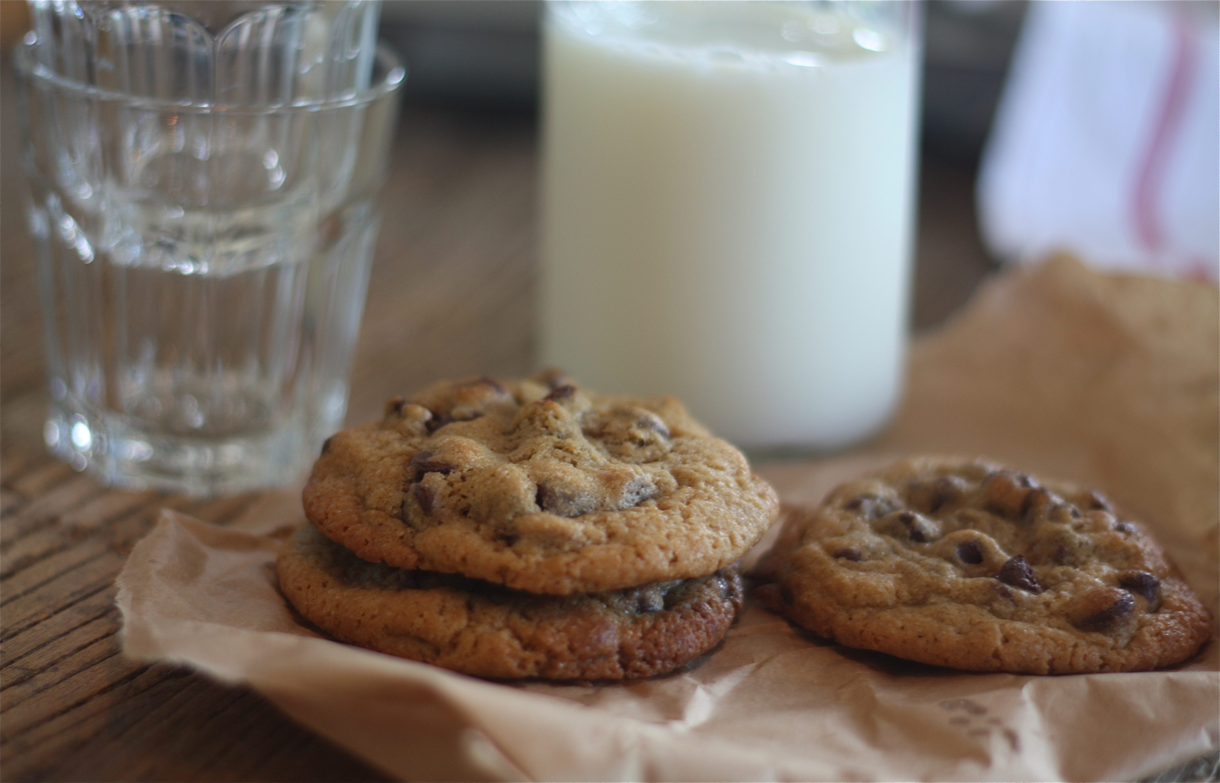 Chocolate chip cookies er noe av det beste jeg vet om. Servert med et glass melk er jeg lykkelig! Noe jeg også liker er å prøve ut nye cookie oppskrifter, denne er fra Kristine bak den flotte bakebloggen www.detsoteliv.no. Enkle og god oppskrift. Jeg bakte ut halve oppskriften, resten frøs jeg ned. Perfekt å ha liggende om det kommer gjester. Ferske cookies er jo best. Det er lørdag, slå deg løs på kjøkkenet.
