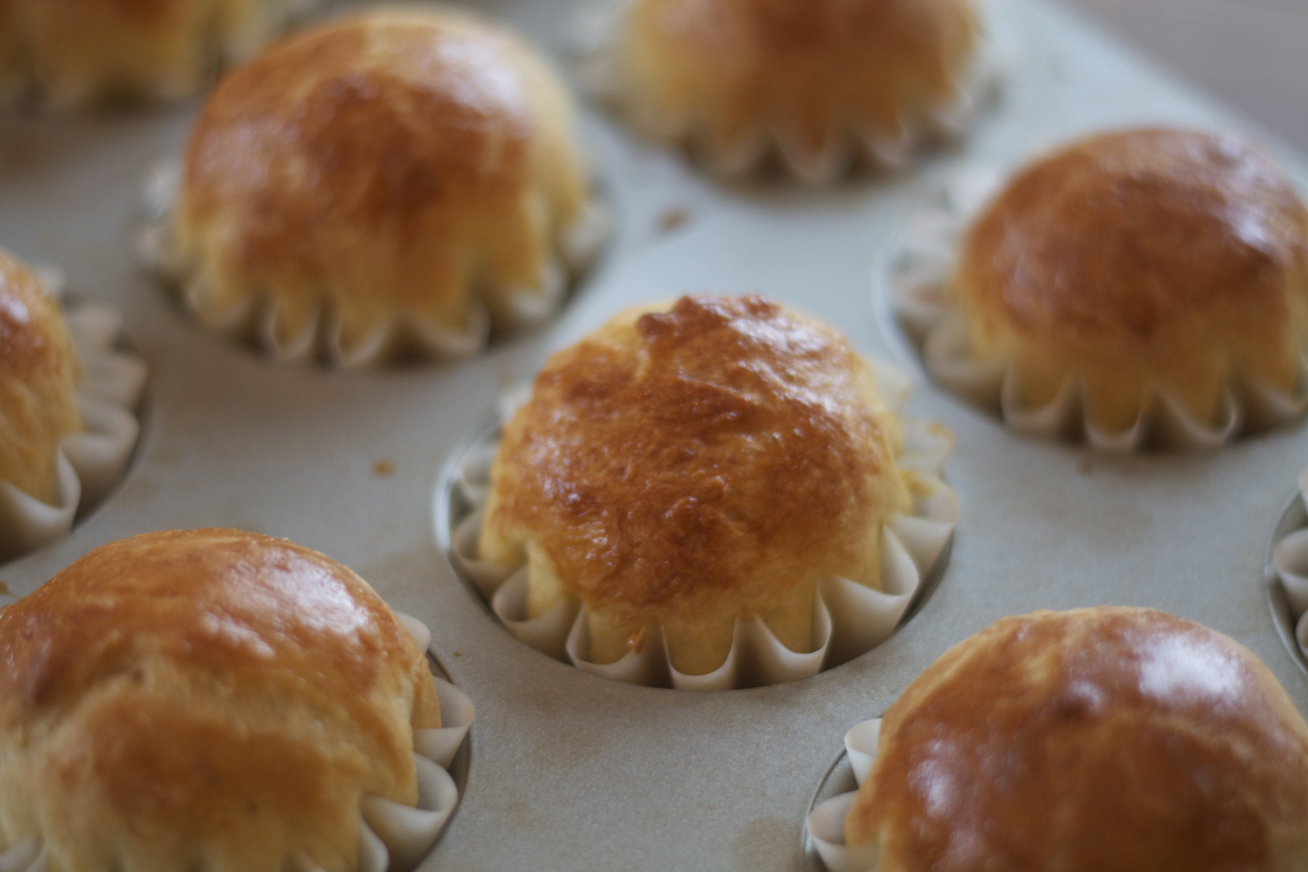 3. Hadde bollene mine i disse muffinsformene fra Wilton. Veldig fine. Du kan bruke briocheformer, eller bare lage boller. Etterhev i ca. 30 minutter.
